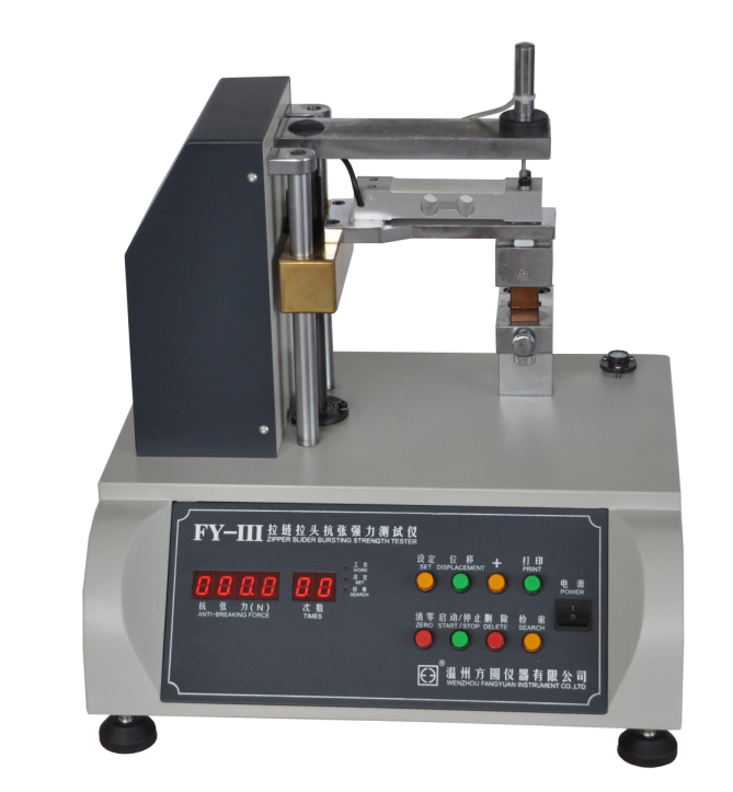 FY-III拉鏈拉頭抗張強(qiáng)力測(cè)試儀 QB/T 2171,QB/T 2173,QB/T 2172,ASTM D2061等標(biāo)準(zhǔn)。