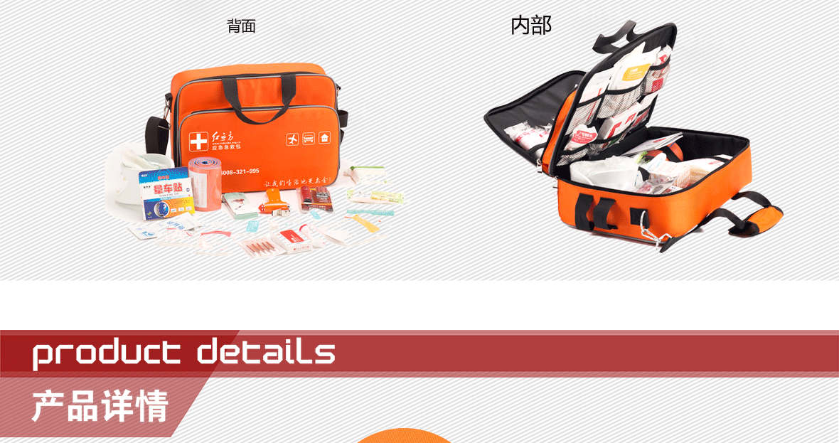 | 型號(hào): RCC-168車載大巴車急救包 | 材質(zhì):600D滌綸 | 顏色:淺紅 | ||||||